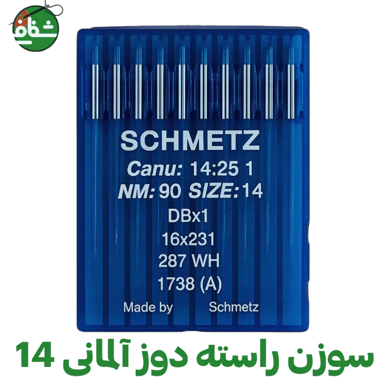سوزن راستهدوز وارداتی Schmetz سایز ۱۴ ساخت آلمان با کیفیت بالا,گزینهای مطمئن برای دوختی تمیز و دقیق.